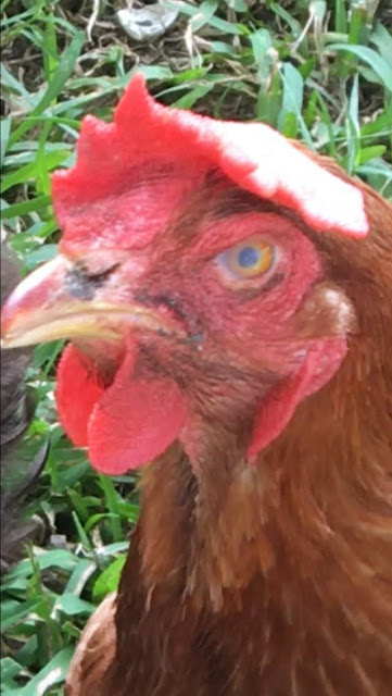 Hazel is in the coop laying an egg and didn't want to be disturbed.